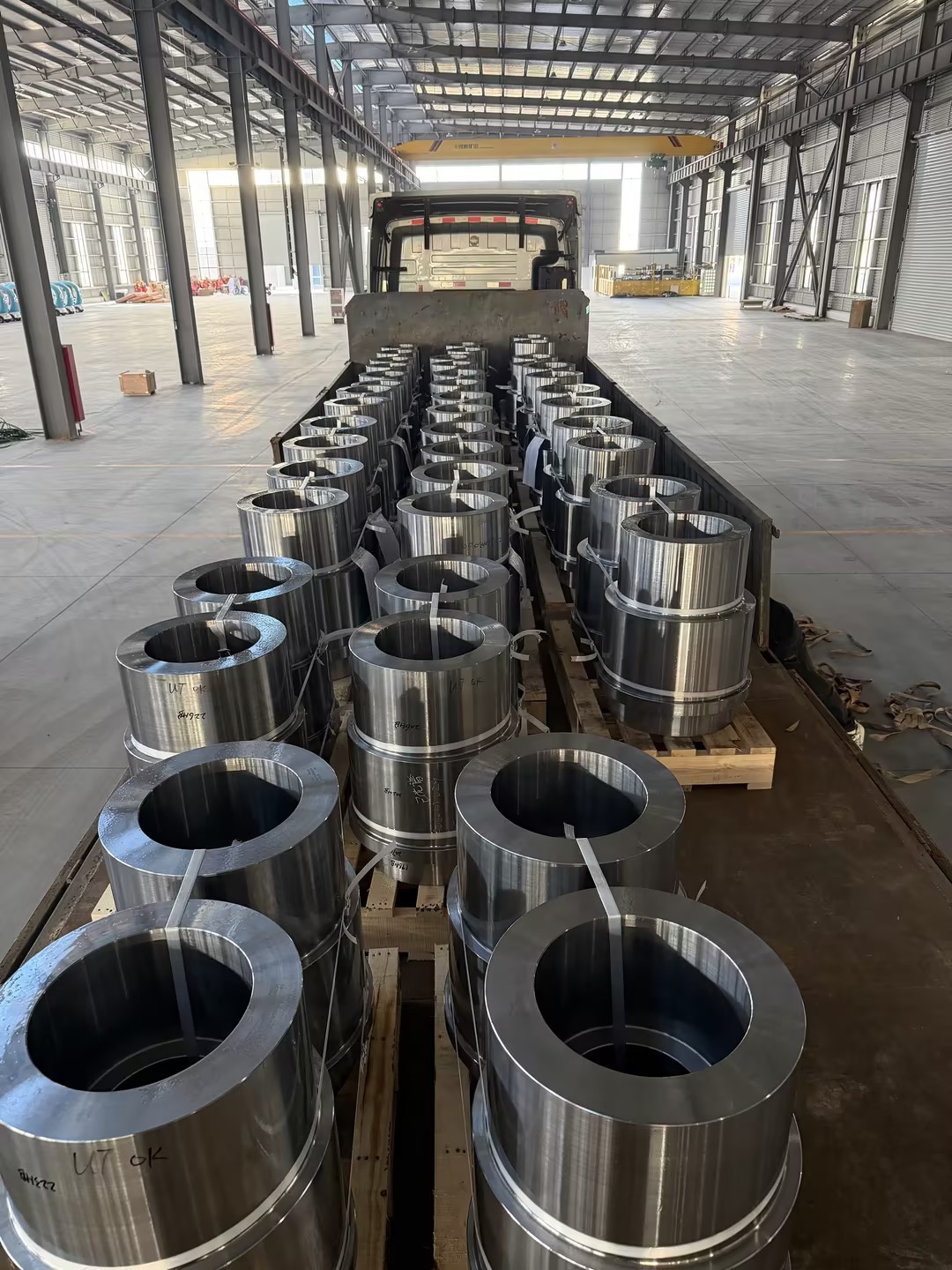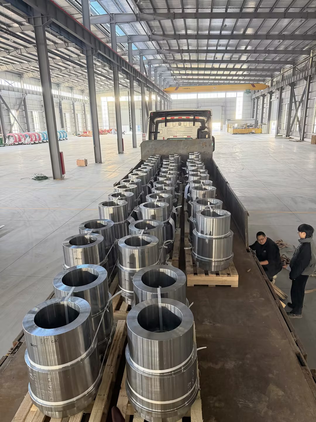 Các bộ phận vòng rèn đã hoàn thiện đang được tải và vận chuyển