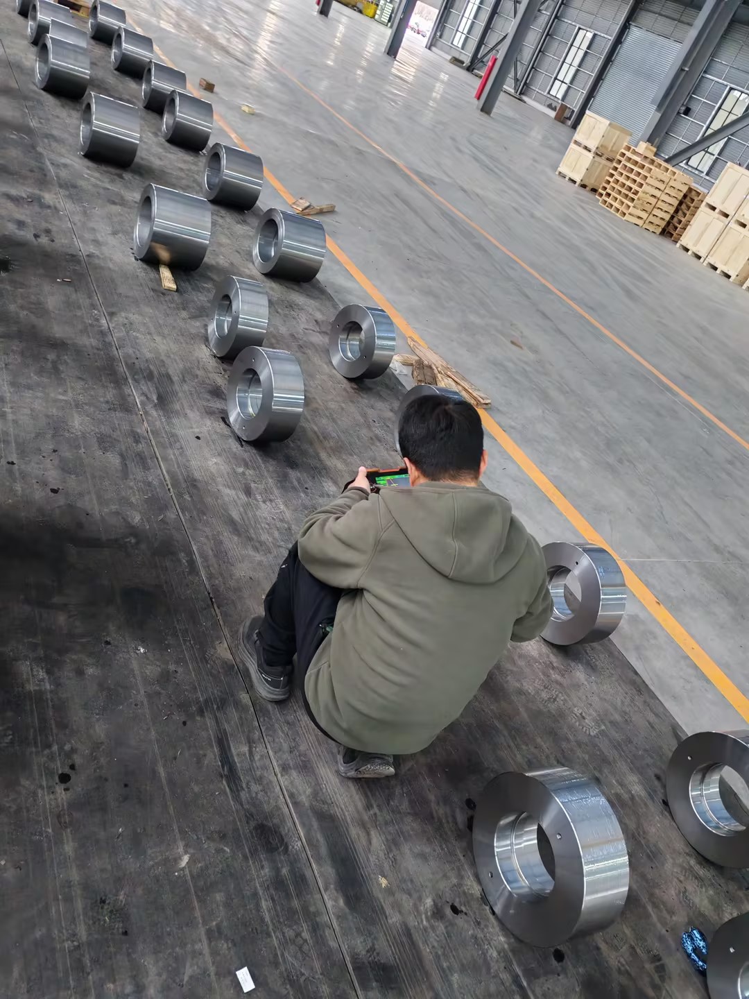 Khách hàng kiểm tra tại chỗ các sản phẩm nhẫn rèn đã hoàn thiện